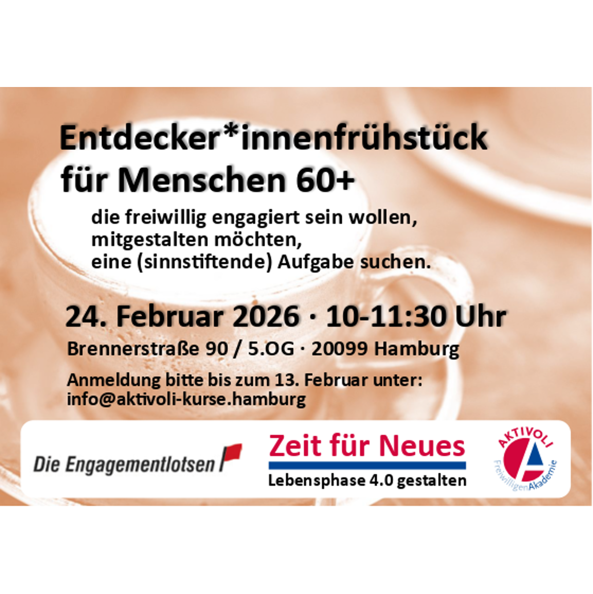 Darüber und über die Möglichkeiten des freiwilligen Engagements tauschen wir uns aus. Für die kostenlose, kleine Frühstücksrunde, bei der jeder zu Wort kommen soll, bitten wir um eine E-Mail-Anmeldung bis Dienstag, 24. Februar unter info@aktivoli-kurse.hamburg